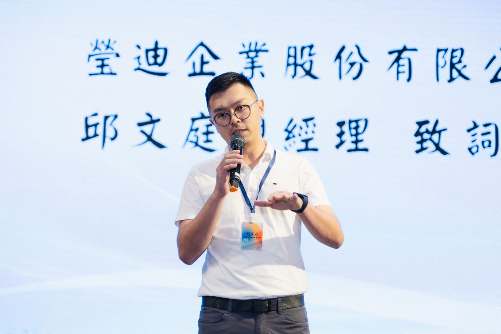 瑩迪邱文庭總經理以實例分享轉型過程中的艱辛,強調成功的關鍵在於堅持與持續創新。 |